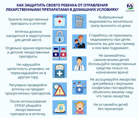 Отравления. Чаще всего дети отравляются лекарствами из домашней аптечки, поэтому хранить медикаменты необходимо в местах совершенно недоступных для детей. Различные ядовитые вещества, отбеливатели, кислоты ни в коем случае нельзя хранить в бутылках для пищевых продуктов - дети могут по ошибке выпить их. Такие вещества следует держать в плотно закрытых маркированных контейнерах, в абсолютно недоступном для детей месте. Необходимо следить за ребенком при прогулках в лесу - ядовитые грибы и ягоды возможная причина тяжелых отравлений. Кроме того, отравление угарным газом крайне опасно для детей и сопровождается смертельным исходом большинстве случаев. Важно неукоснительно соблюдать правила противопожарной безопасности во всех местах пребывания детей, особенно там, где есть открытый огонь (печи, камины, бани и т.д.).