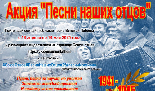 С 18 апреля по 10 мая 2025 года Всероссийской общественной организацией «Союз отцов» проводится акция «Песни наших отцов».