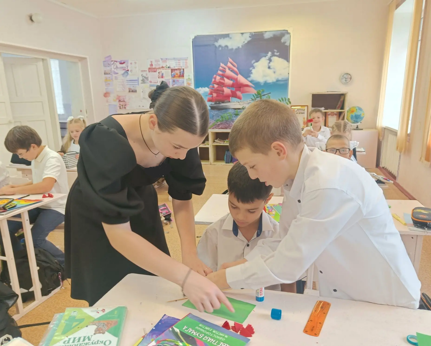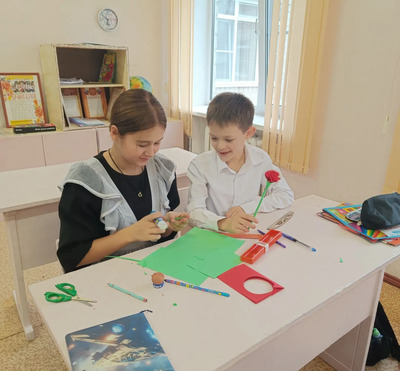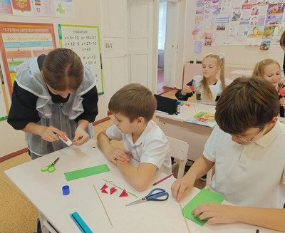 2 декабря четвероклассники, участники программы «Орлята России», и их наставники, ученицы 8 класса, приняли участие в акции «Красная гвоздика». Совместно с советником директора по воспитанию Кремневой Аллой Николаевной, учителем начальных классов Балабанян Юлией Андреевной ребята изготовили красные гвоздики из бумаги.