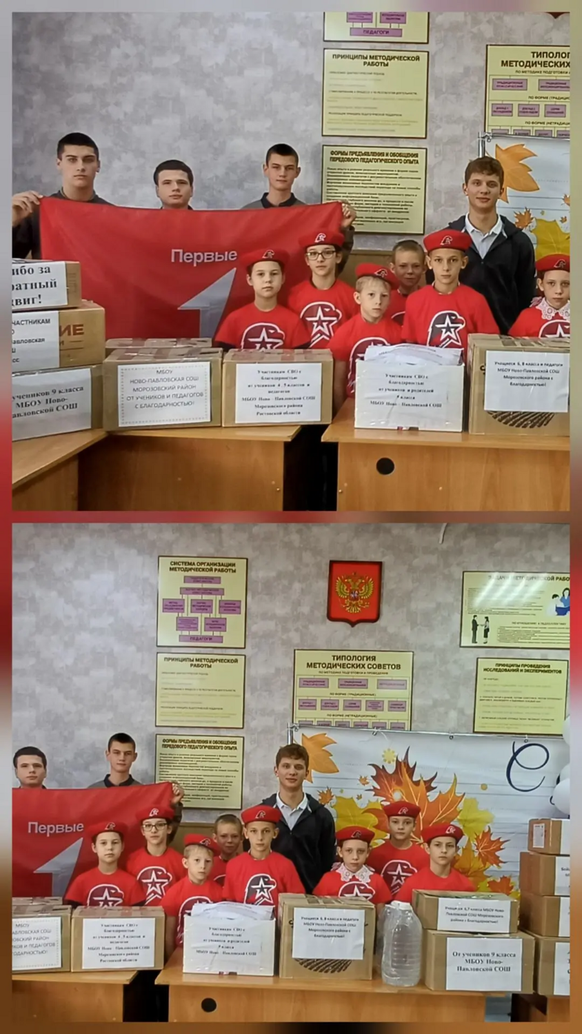 14 октября активисты юнармейского отряда Ново-Павловской школы "Патриоты России" имени Героя СВО Александра Куликова приняли участие в сборе гуманитарной помощи для участников специальной военной операции.