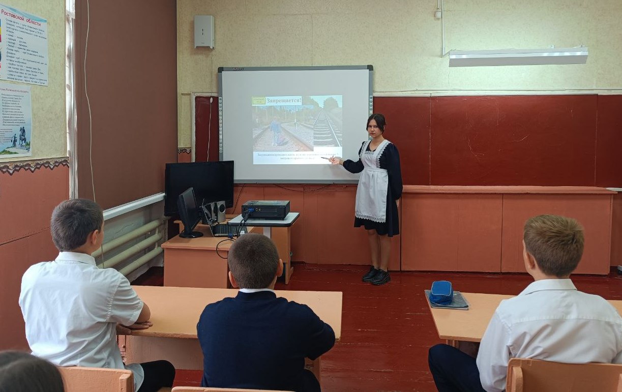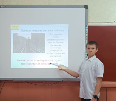 В рамках детского месячника «Уступи дорогу поездам!» в 7 классе проведена беседа «Безопасность на железнодорожных объектах». Семиклассники знают, что нахождение на железнодорожных путях, переход их в не установленных местах, озорство, хулиганство и необдуманные поступки связаны с риском и опасностью для жизни, во избежание чего необходимо строго соблюдать установленные на железных дорогах правила безопасного поведения.