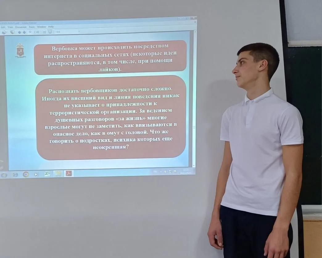 14 ноября для учащихся 10 класса классным руководителем В.А. Черенковой проведена профилактическая беседа на тему «Осторожно! Вербовка!».