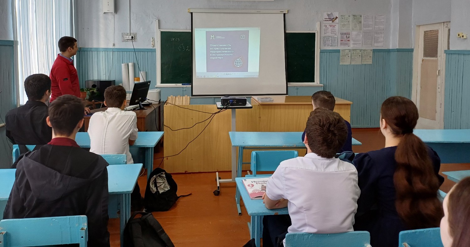 Классный руководитель В.А. Черенкова рассказала ребятам об угрозе и причине вовлечения детей и молодёжи в деятельность террористических, экстремистских и неонацистских организаций. Девятиклассники просмотрели видеоролики предложенные программой от Росмолодежи "Безопасная молодёжная среда": Миф 1, Маркеры подверженности неонацистскому воздействию, Вербовка украинских и западных спецслужб. Алгоритмы, маркеры и противодействие. Ответственность за преступления террористического и экстремистского характера.