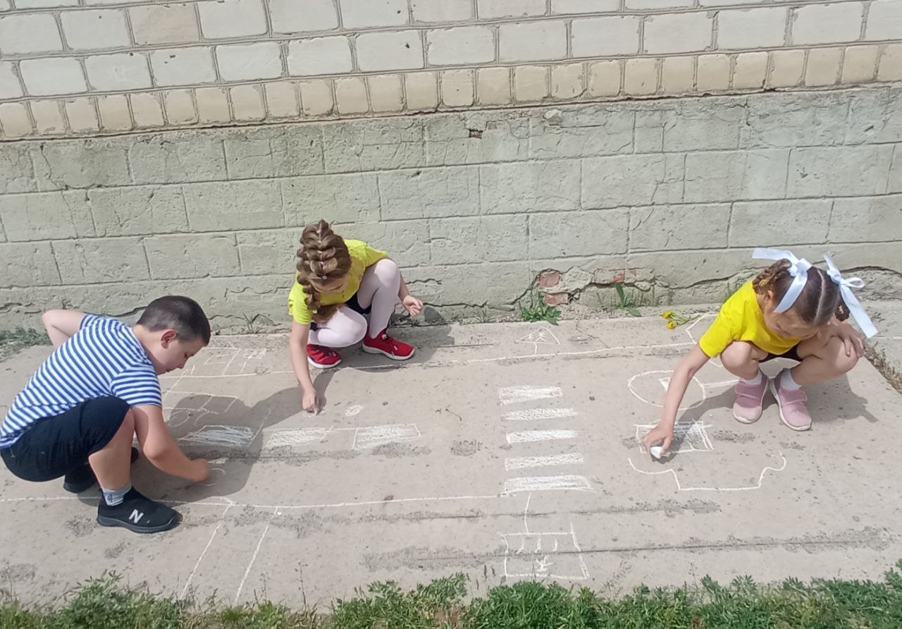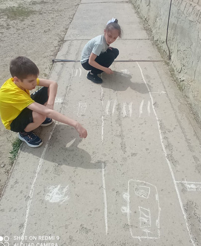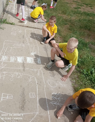 Автомобильная дорога является повышенным источником опасности для детей по причине малого опыта, невнимательности, незнания и несоблюдения основных правил, недостаточно развитого чувства опасности. Ребенок – самый незащищенный участник дорожного движения, поэтому с самого раннего возраста говорим с детьми об опасностях, которые подстерегают их на дороге. 25 апреля, продолжая говорить о безопасности, на уроке физкультуры, ребята 2 класса нарисовали безопасную улицу с дорожными знаками. Вспомнили основные правила дорожного движения.