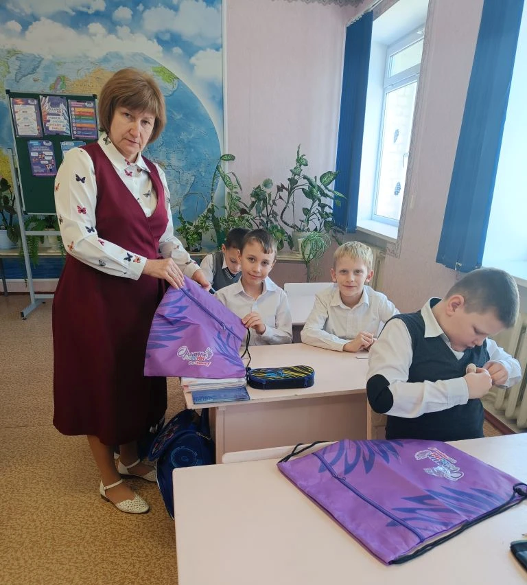 Каждый «орлёнок» получил из рук Советника по воспитанию брендированную сумку для сменной обуви и значок.