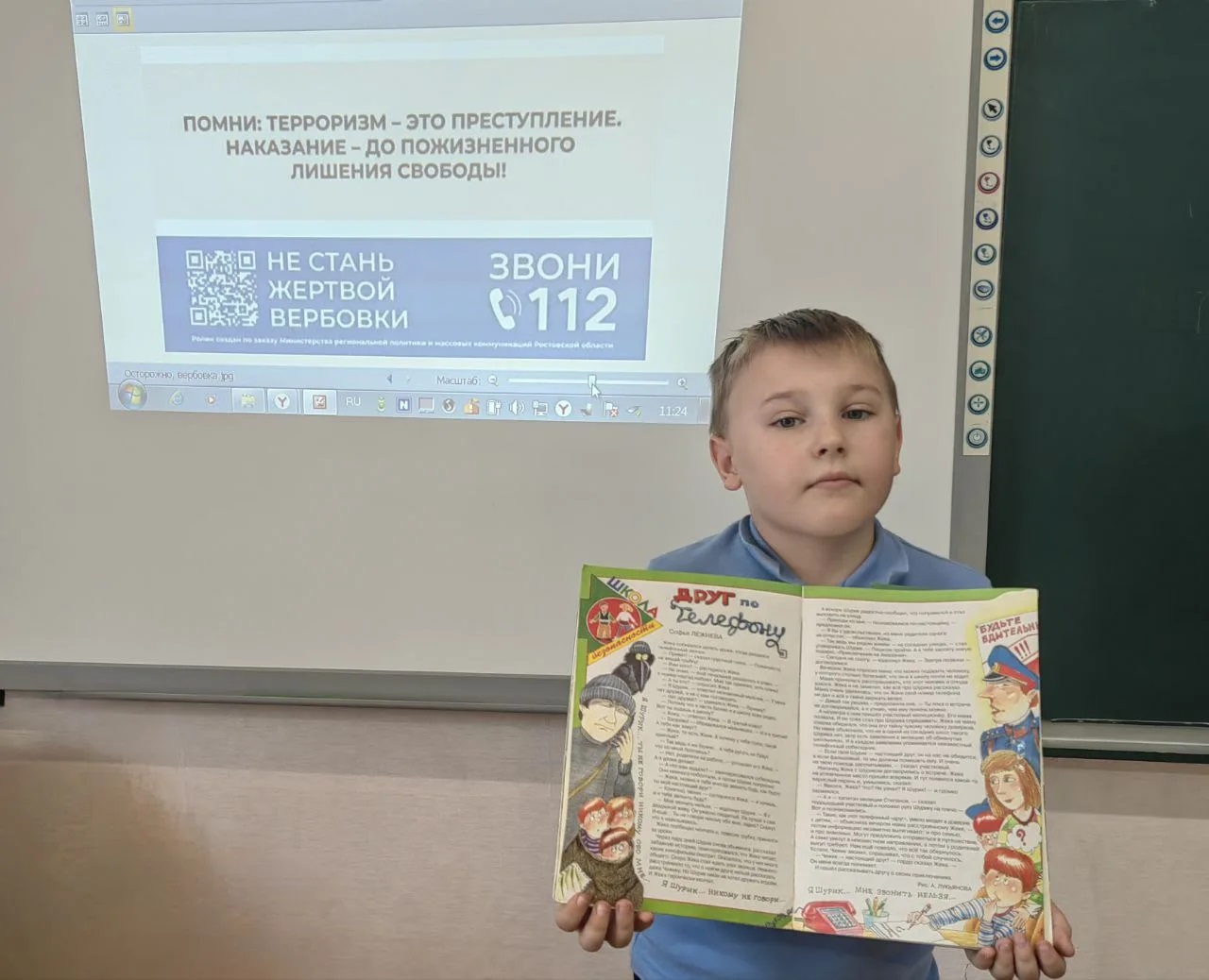 14 ноября в 4 классе прошёл час чтения "Как не стать жертвой вербовки". Учитель рассказал ребятам о путях вовлечения детей в преступную деятельность, ответственности и способах защиты от мошенников. Затем ребята читали тексты из раздела "Школа безопасности" в детском журнале "Мурзилка". В ходе беседы все пришли к выводу, что нужно быть очень осторожным в интернет-общении, соблюдать цифровую гигиену, честно рассказывать своим близким о проблемах или подозрительных ситуациях.