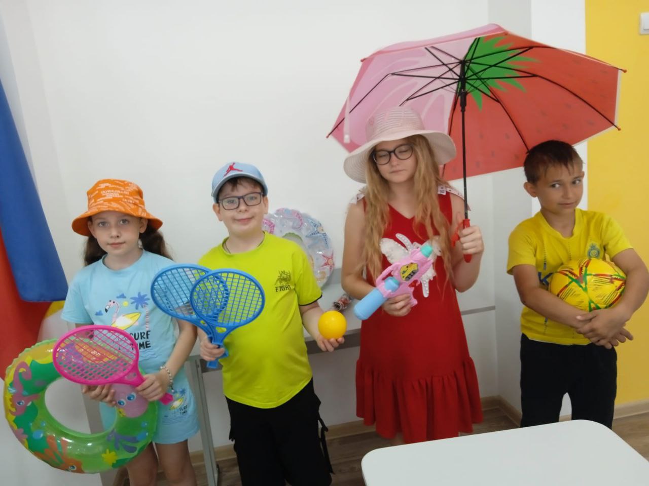 «СОБИРАЕМСЯ НА ПЛЯЖ». Ребята собрали панамы светлого света, прочные надувные круги, мяч и ракетки. Верный ли выбор сделали юные отдыхающие?