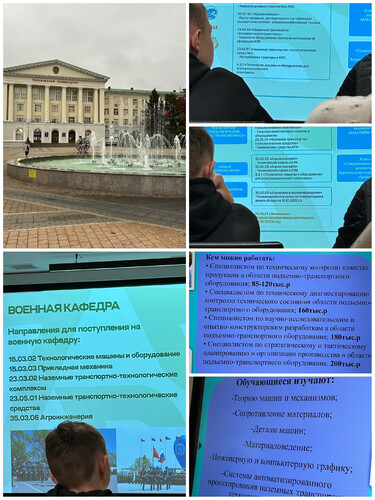 5 октября Любченко Алексей посетил день открытых дверей, который проходил в ДГТУ. В холле первого этажа на интерактивных досках были представлены презентации гуманитарных факультетов, а в холле второго этажа - презентации технических факультетов. После общего собрания в конгресс- холле ДГТУ Алексей решил поконкретнее познакомиться с агропромышленным факультетом. На встрече с абитуриентами выступил декан факультета Рудой Дмитрий Владимирович, он же провёл экскурсию по кабинетам и лабораториям факультета. День был плодотворным и насыщенным. Много новой информации для размышления. Впечатления об институте остались только положительные!
