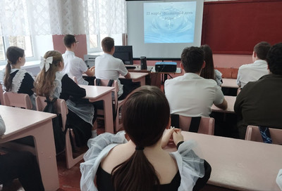 22 марта отмечается Всемирный день воды. Вода - источник жизни на планете. Без чистой воды не могут жить ни растения, ни животные, ни человек. В 8 классе прошёл экологический час, цель которого - формирование осознанного, бережного отношения к воде.