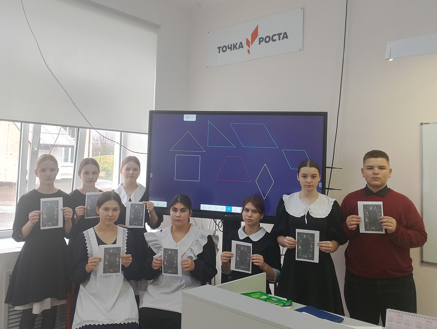Обучающиеся 8 класса Ново- Павловской школы приняли участие в фестивале геометрических фигур «МИР ЧЕТЫРЁХУГОЛЬНИКОВ», который проходил на базе школьного информационного центра «ТОЧКА РОСТА» (кабинет физики).