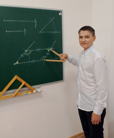 Активными участниками фестиваля геометрических фигур стали также другие обучающиеся. Яровой Вячеслав поделился опытом построения параллелограмма по двум сторонам и углу между ними с помощью циркуля и линейки. Приходько Егор безошибочно ответил на вопросы контрольного листа самопроверки.