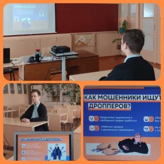 Классный коллектив 11 класса принял участие в информационной кампании против кибермошенничества «АнтиДроп», которую проводило Минобразование Ростовской области совместно с центральным банком Российской Федерации. Проведён тематический классный час, направленный на формирование навыков безопасного финансового поведения и профилактику вовлечения в мошеннические схемы.