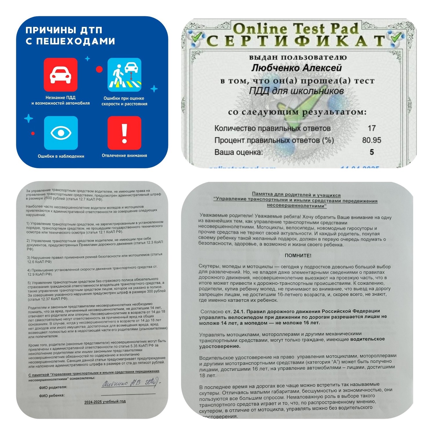 В комплекс классных мероприятий по изучению Правил дорожного движения включается и работа с родителями учащихся. Они были проинструктированы на тему "Управление транспортными и иными средствами передвижения несовершеннолетними", им были вручены памятки безопасности.