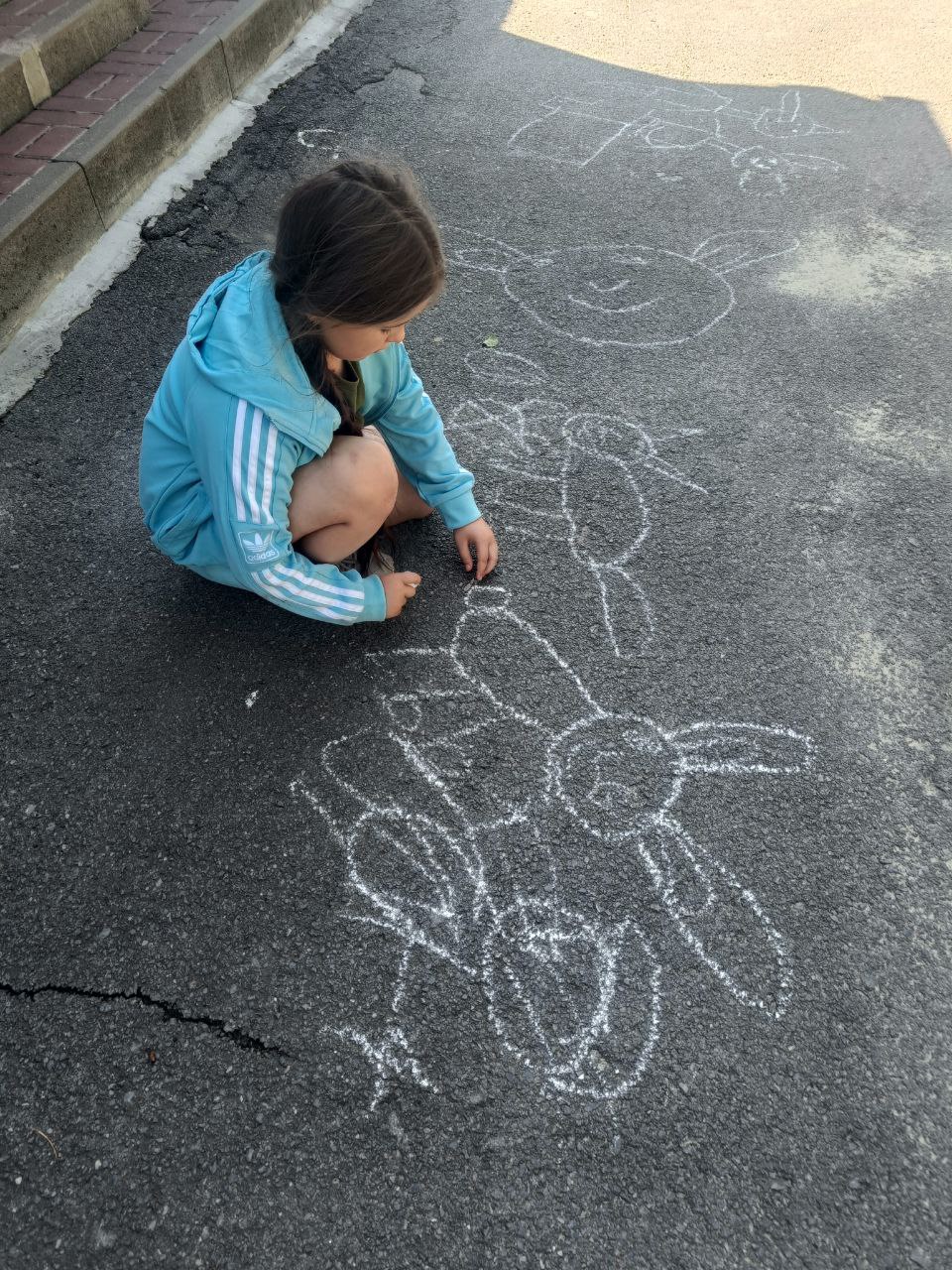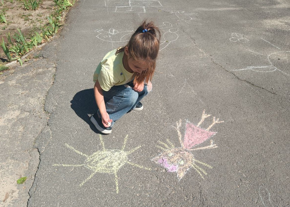 После занятия дети с удовольствием рисовали на асфальте героев любимых сказок и мультфильмов.