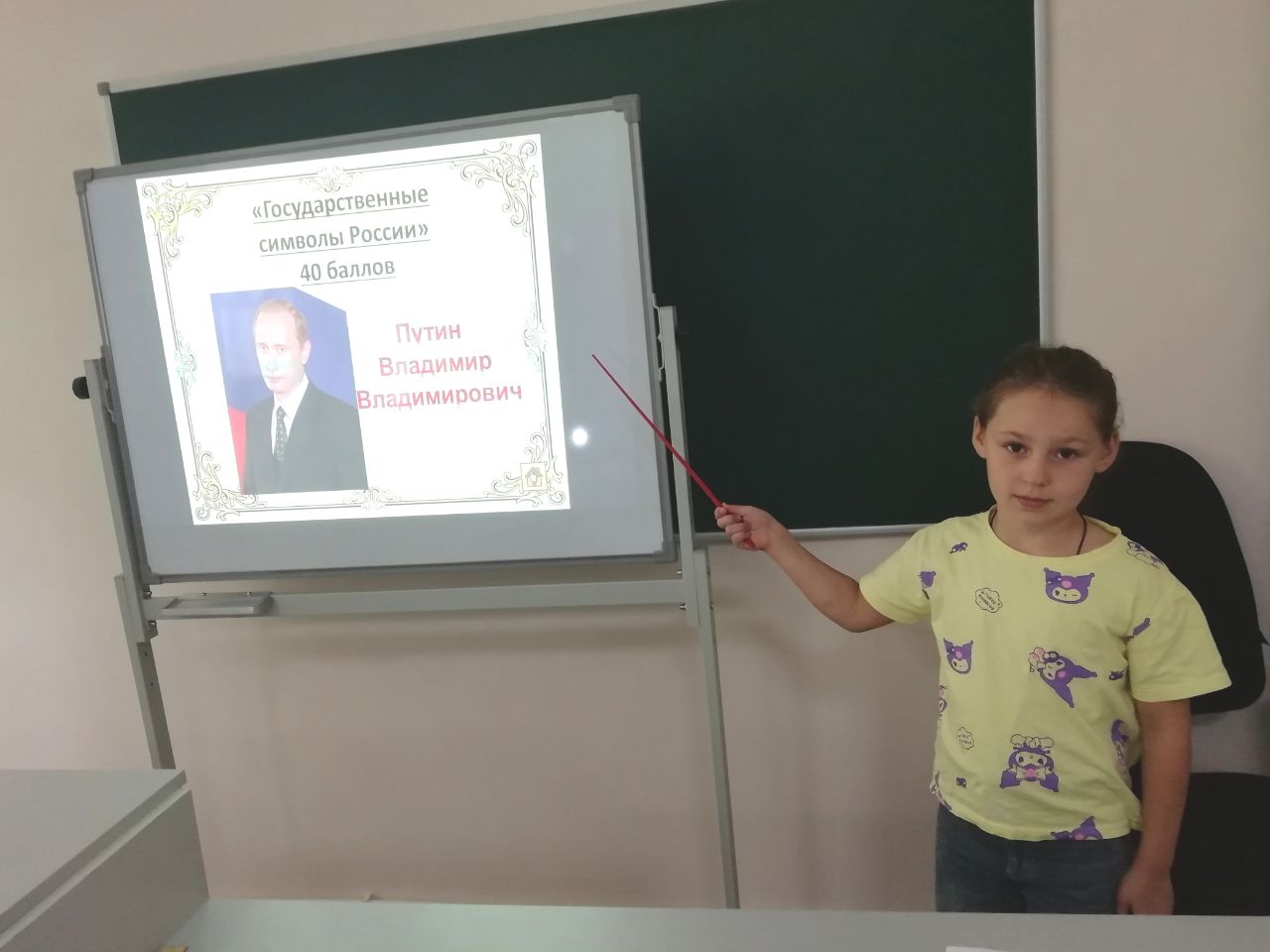 Ребята отстаивали звание лучшего знатока. Вопросы были разных направлений: "Профессии", "Символы России", "Природа и мы"," Праздники", "Мир художественной литературы", "Математика". Викторина проходила в 2 раунда. В перерыве между раундами дети исполнили песню "От улыбки хмурый день светлей". Ребята с интересом отвечали на вопросы, выбирали правильный ответ из предложенных вариантов. В заключении дети позанимались на тренажёре в компьютере: отвечали на вопросы по теме "Технологии современного программирования".