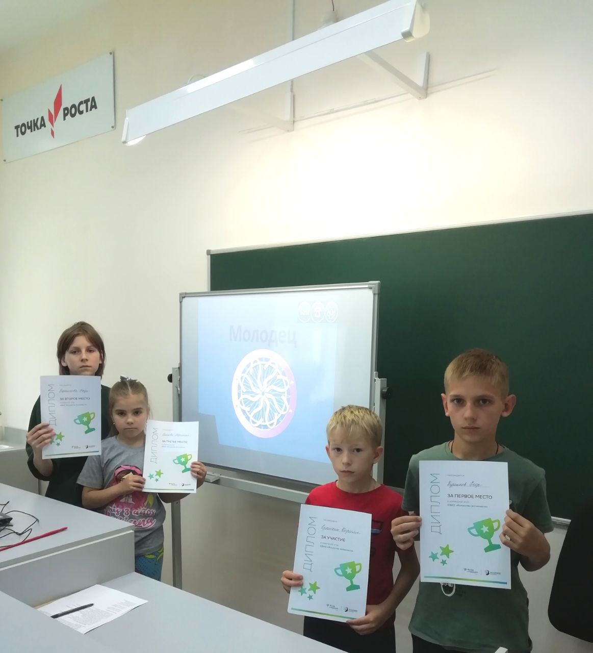 В конце мероприятия были подведены итоги: 1 место занял Куренков Егор, 2 место у Барашковой Надежды, 3 место у Ершовой Вероники. Ерошкин Кирилл был награжден за активное участие. Ребята порадовали своими ответами. Всем мероприятие понравилось.