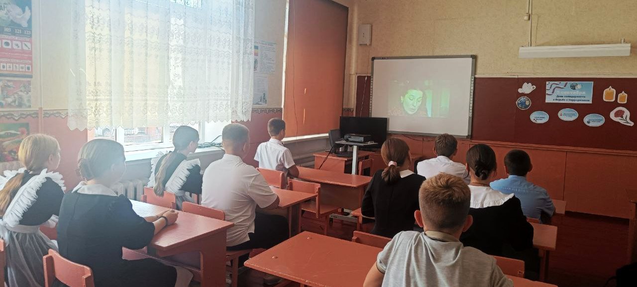 Советник директора по воспитанию организовала в 8 классе киноурок «Граждане Беслана». В рамках мероприятия обучающиеся просмотрели документальный фильм и приняли участие в обсуждении.