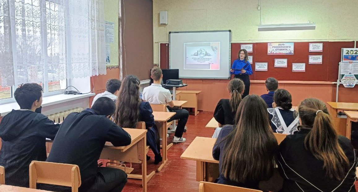 23 января советник директора по воспитанию Кремнева А. Н. организовала Классную встречу. На встречу с девятиклассниками пришла выпускница нашей школы, студентка 3-го курса факультета физики, математики и информатики Таганрогского института имени А. П. Чехова Кремнева Дарья. Дарья рассказала ребятам о своем направлении обучении, студенческой жизни, традициях и ритуалах студентов. Школьники слушали с большим интересом, ведь пройдет немного времени, и многие из них тоже станут студентами.