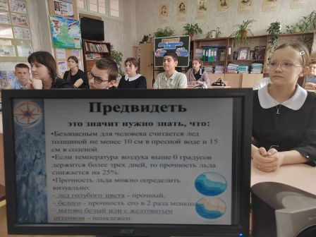 В 7 классе прошел классный час, посвященный правилам безопасного поведения на водоемах в зимне-весенний период.