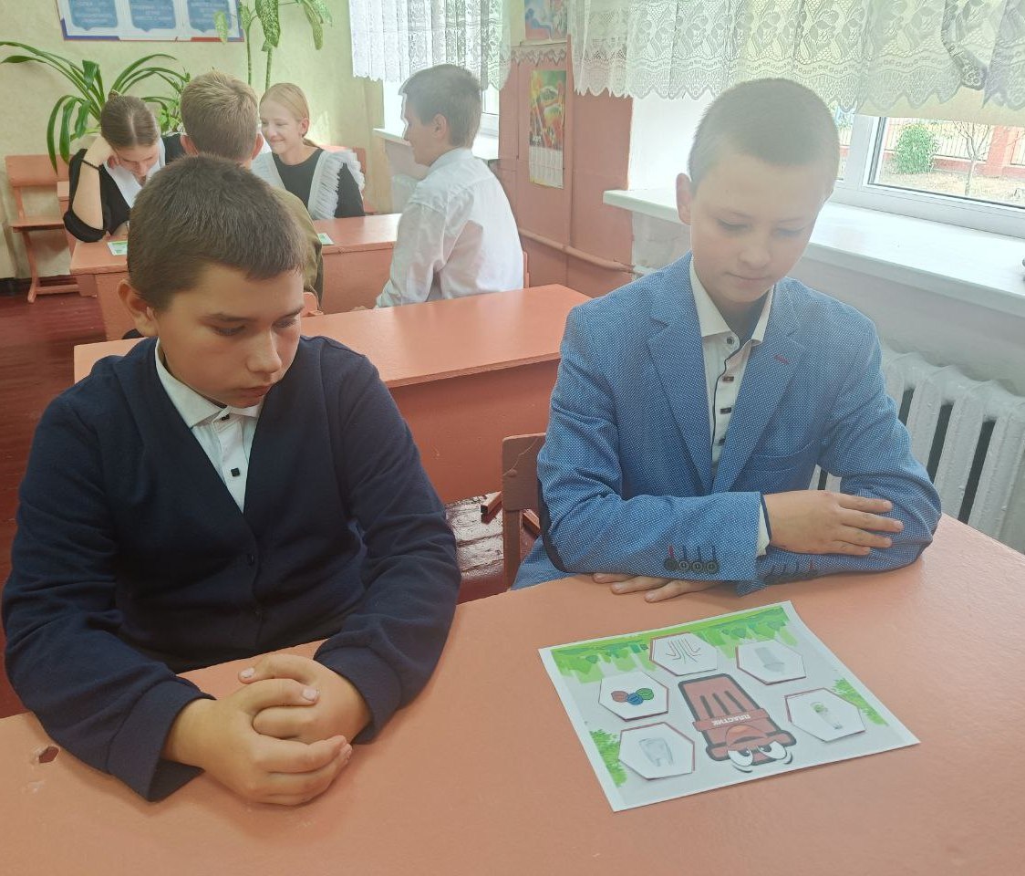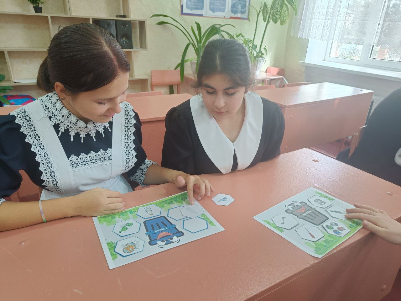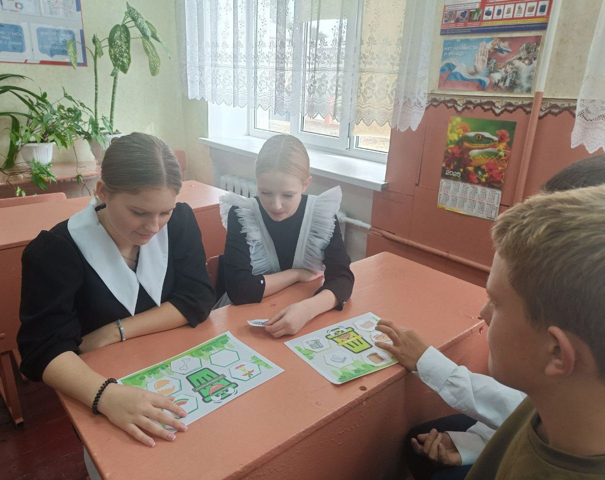 Восьмиклассники играли в дидактическую игру «Сортировка мусора», дети сортировали карточки с изображением различных видов отходов по контейнерам с соответствующими рисунками. Игра способствовала развитию экологического мышления и навыков осознанного потребления. Ребята учились понимать важность сортировки мусора для сохранения окружающей среды.