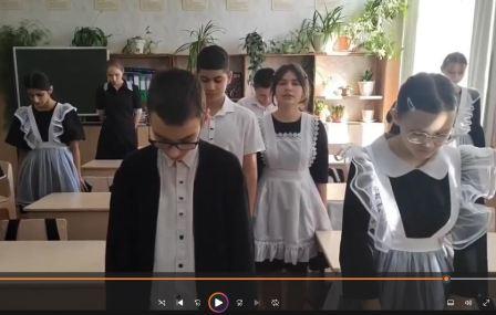 Обучающиеся 7 класса рассказывали о героях – освободителях, просмотрели презентацию, иллюстрирующую памятники и мемориальные комплексы, расположенные в городе Ростове-на-Дону. В завершении Минутой молчания почтили память погибших в годы Великой Отечественной войны.