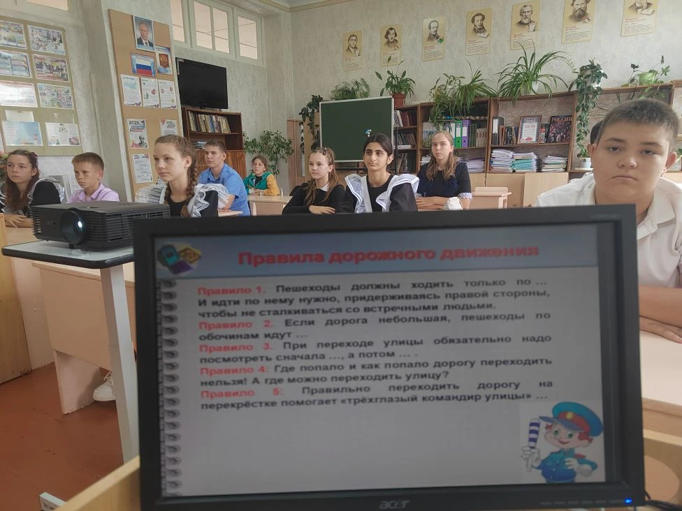 В 7 классе прошел классный час на тему «Правила нашей безопасности». Вместе с классным руководителем учащиеся вспомнили основные правила поведения на территории школы, вспомнили общие обязанности учащихся (поведение на перемене, в столовой, во время проведения внеурочных мероприятий).Но самыми важными были знания правил безопасного поведения на дороге и дорожных знаков. Детям были разъяснены правила поведения вблизи проезжей части, наиболее часто встречающиеся опасные дорожные ситуации и важность перехода дороги только по пешеходному переходу. Классный руководитель объяснила ребятам, как влияет на безопасность пешеходов использование светоотражающих элементов в темное время суток. Ученики с пониманием и ответственностью участвовали в беседе и решали различные дорожные задачи.