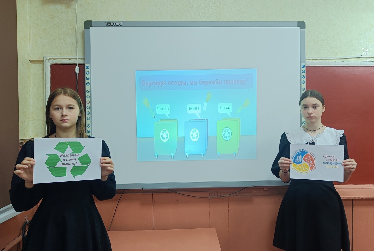 В рамках проекта «Вместе сохраним природу Дона» 4 декабря в 8 классе прошёл классный час «Сортируя отходы, мы бережём природу!».