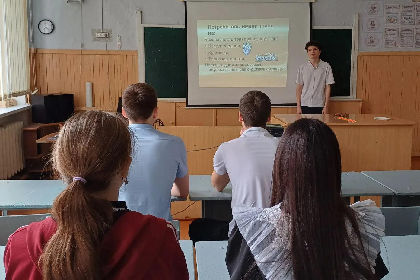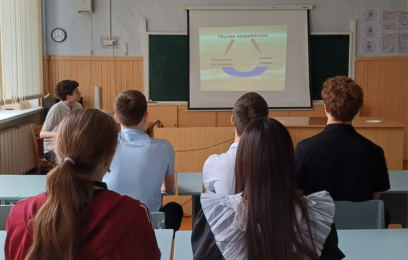 Десятиклассники познакомились с основными правами потребителя, учились пользоваться "Законом о защите прав потребителей". В ходе классного часа ребята получили ответы на такие вопросы: кто такой потребитель, почему необходимо защищать права потребителя, кто может защитить их права, узнали о системе законодательства РФ по защите прав потребителей.