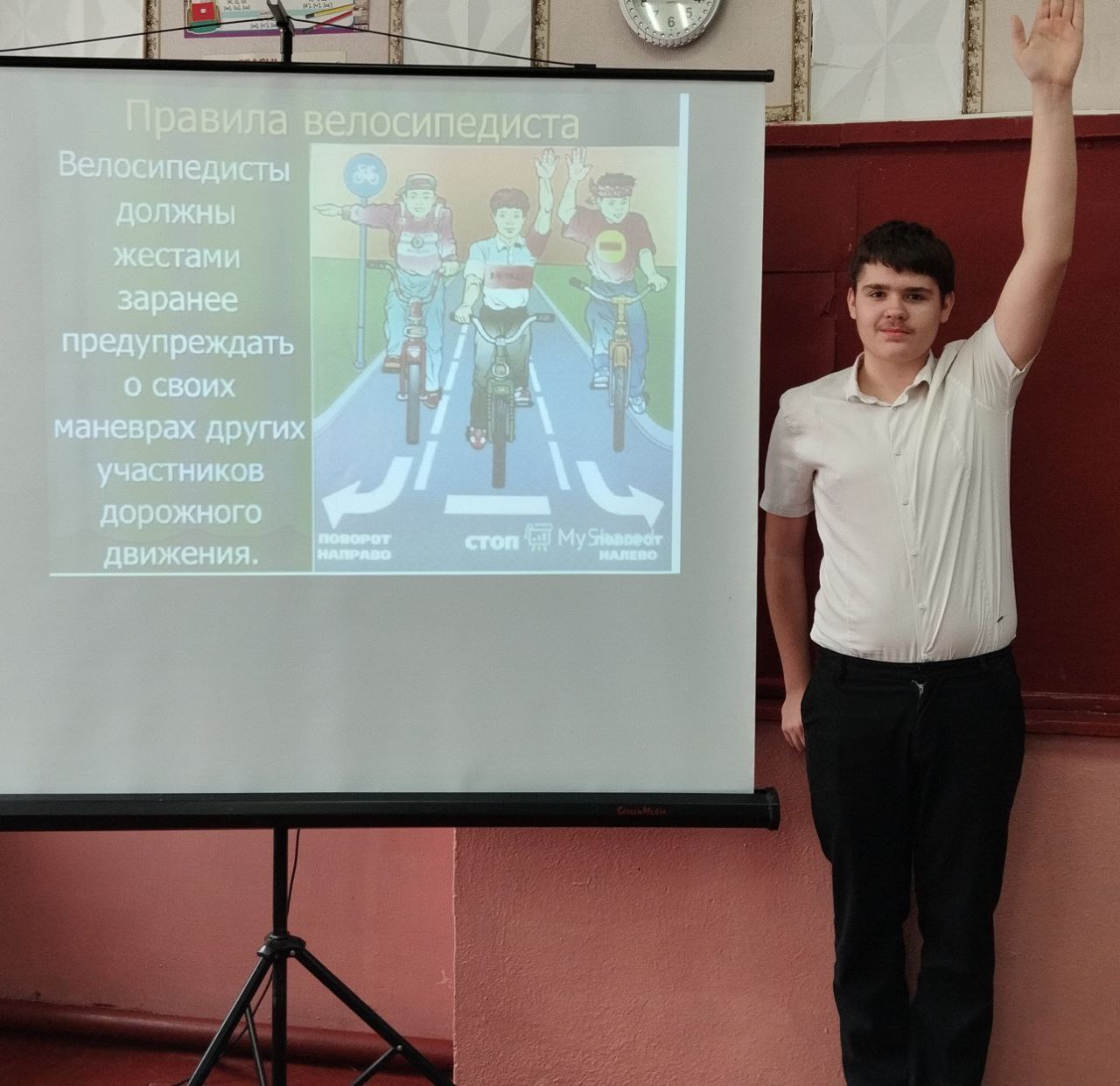 В рамках областной широкомасштабной акции "Весенние дороги. Дети. Безопасность" в 8 классе прошёл классный час "Велосипедист - участник дорожного движения".