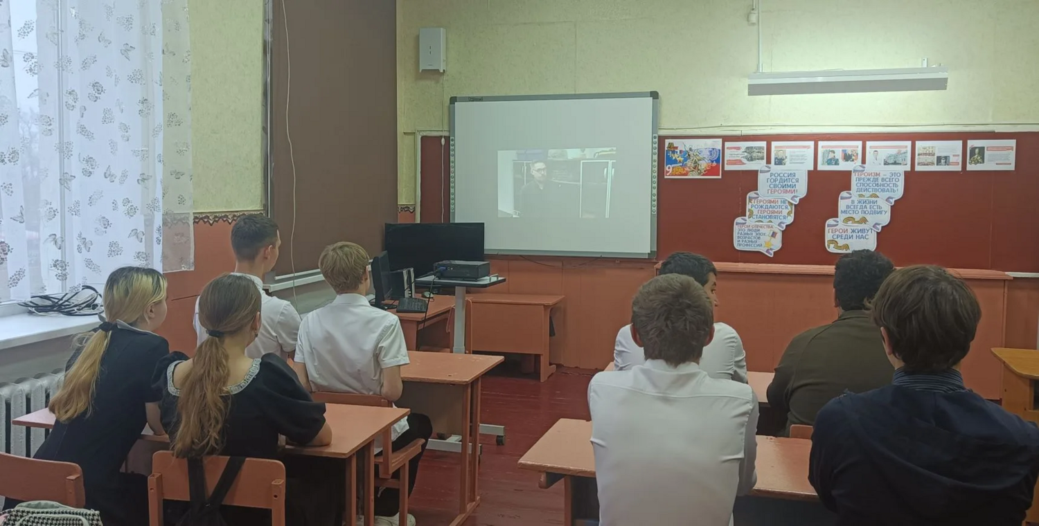 На занятии советник говорила с ребятами о тех людях, кто своим подвигом приносят мир и благополучие нашей Родине. Посмотрели фильм о Героях-участниках СВО, уроженцах Ростовской области.