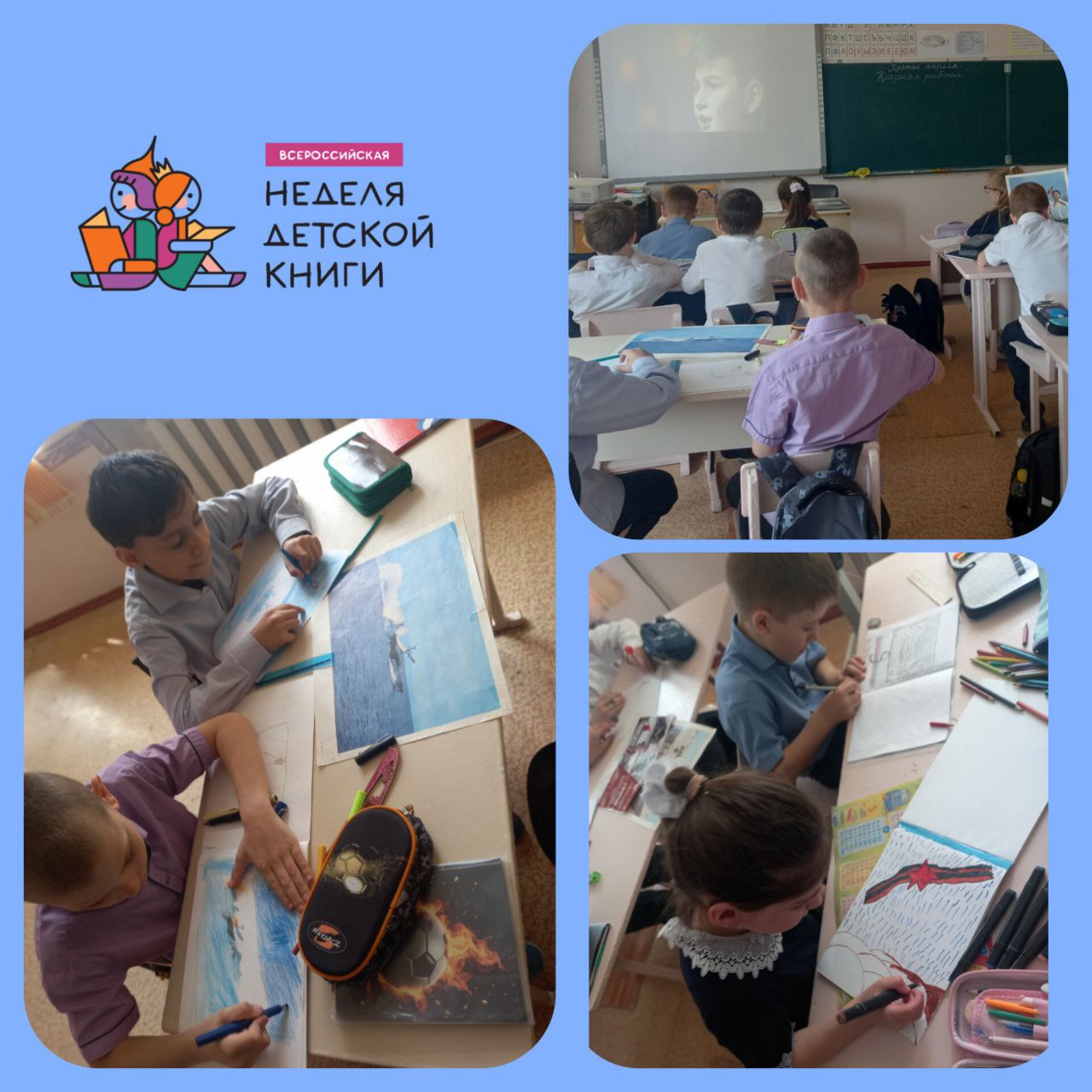 С 22 по 30 марта 2025 года при поддержке Минкультуры России прошла Всероссийская неделя детской книги. Главный оператор акции - Российская государственная детская библиотека. Мероприятия под девизом «История с продолжением», посвящены 80-летию Победы в Великой Отечественной войне и Году защитника. В 3 классе прошел литературный калейдоскоп "А песня готова на бой", учащиеся прослушали стихи и песни военных лет в онлайн формате. Ребята сами были участниками конкурса стихов о защитниках Отечества, добросовестно учили стихотворения и старательно читали патриотические произведения, поэтому внимательно слушали чтецов, а песни военных лет брали за душу своим проникновенным содержанием. Ребята сделали иллюстрации к услышанным стихам и песням.