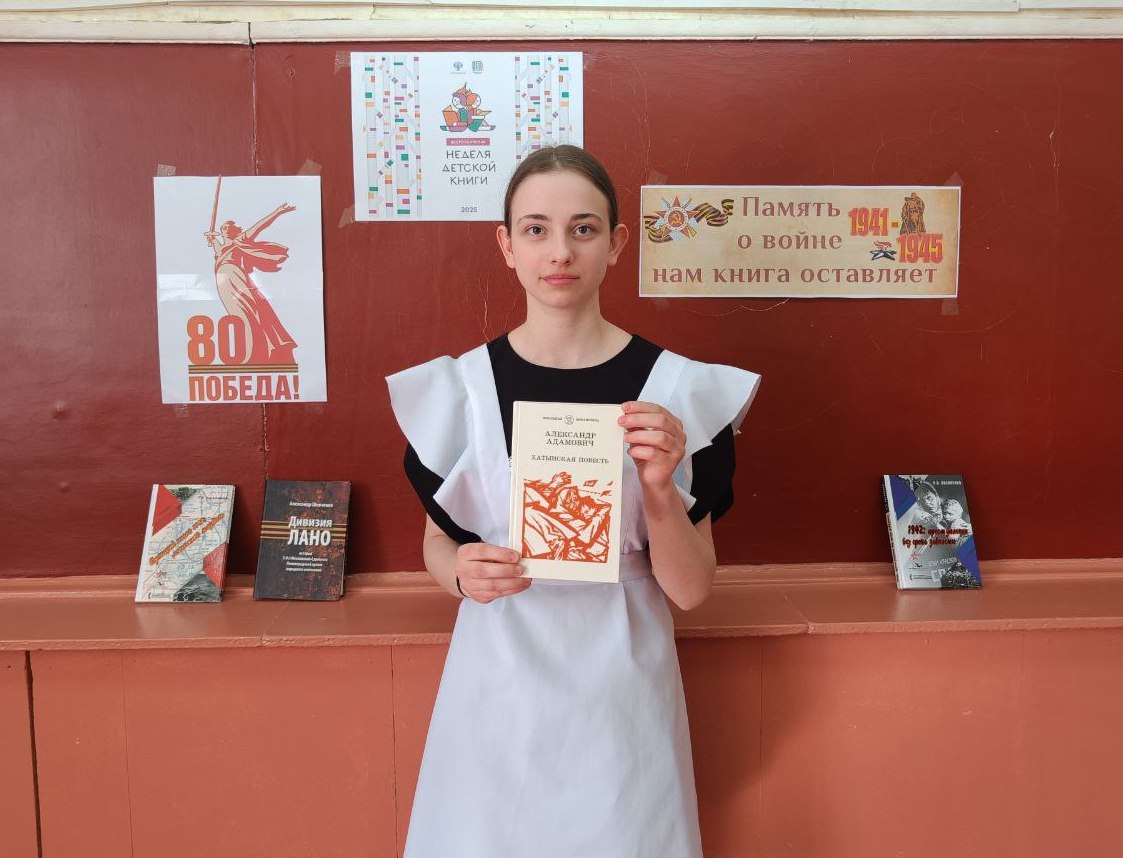 В рамках Недели детской книги, посвященной 80-летию Победы в Великой Отечественной войне и Году защитника Отечества, под девизом «История с продолжением» в 7 классе прошло мероприятие «Память о войне нам книга оставляет». Занятие проходило в формате «Громкие чтения», ребята читали вслух произведение «Хатынская повесть».