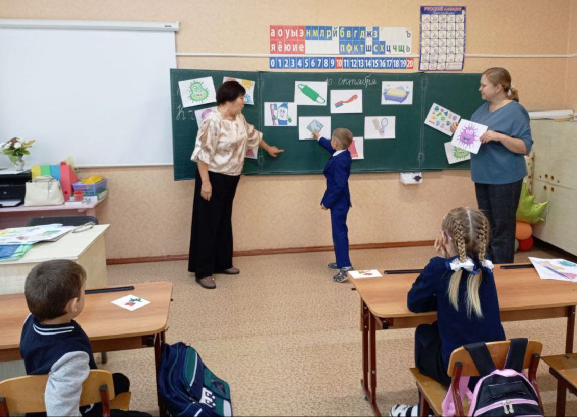 В рамках акции "Мы за здоровую Россию" в 1 классе прошло мероприятие "Правила личной гигиены". Важно с младшего возраста формировать у детей представления значимости сознательного отношения к своему здоровью.