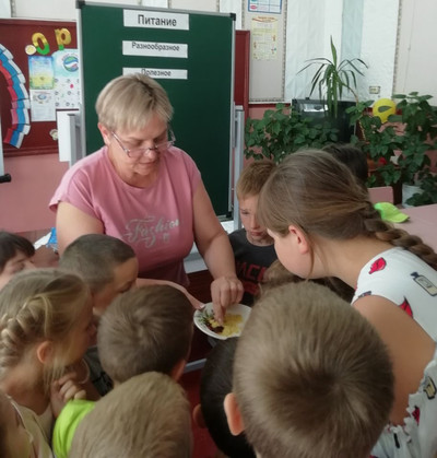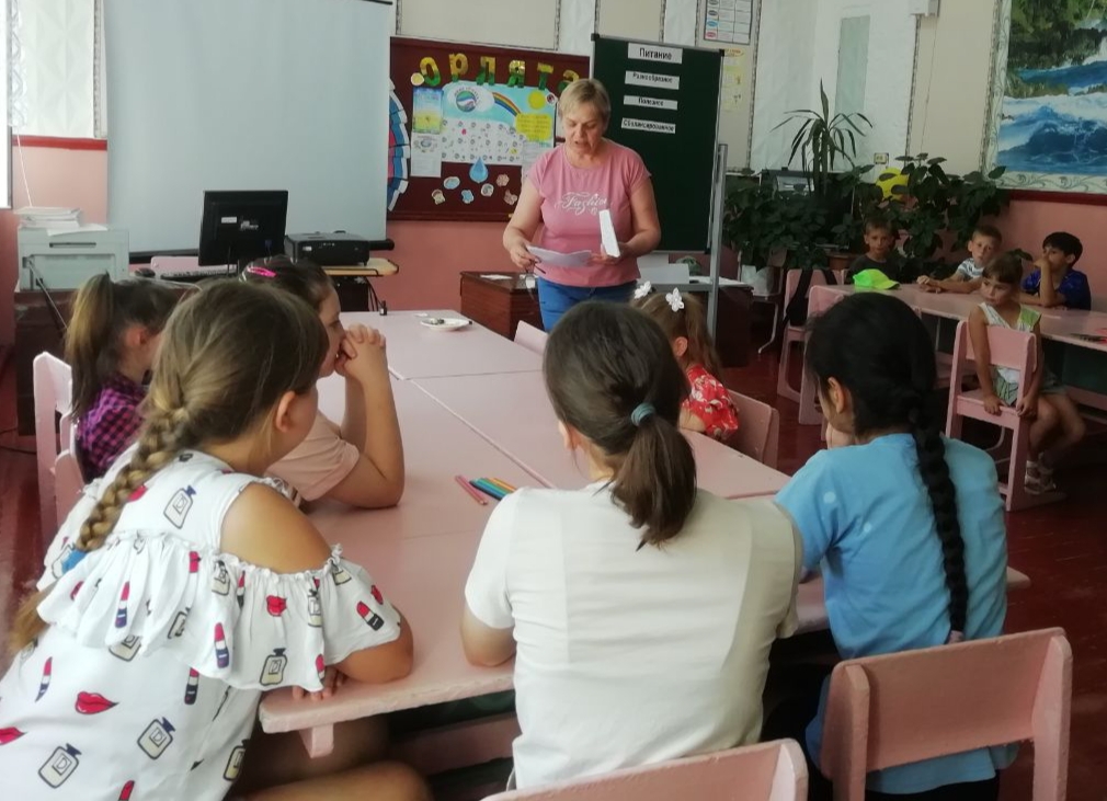 20 июня учитель Елена Николаевна Рылова провела в летнем лагере «Планета детства» мероприятие «Секреты здорового питания». На занятии дети говорили о сбалансированном питании, узнали состав некоторых продуктов, таких как чипсы, газированная вода и степень их вредности, играли в игру «Полезное-вредное». Какичева Екатерина выступила с сообщением о витаминах А, В, С и Д. В конце занятия ребята вывели «Золотые правила питания».