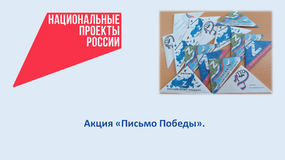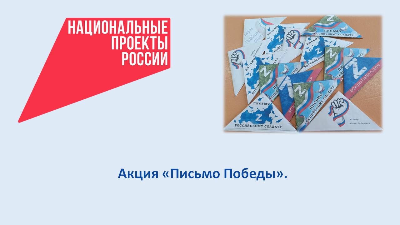 Ученики 7 класса приняли участие в Международной акции «Письмо Победы». Ребята написали теплые пожелания для участников специальной военной операции. Акция «Письмо Победы» – возможность сказать «спасибо» Героям лично, ведь они сражались и продолжают сражаться за свободу и независимость нашей Родины, за мирное небо над головой.