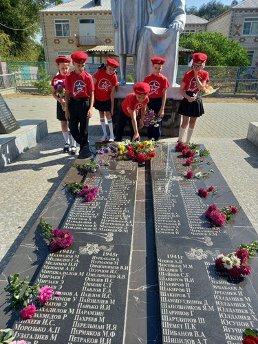 Юнармейский отряд "Патриоты России" имени Александра Куликова принял участие в линейке, посвящённой Дню знаний, ребята торжественно возложили цветы на мемориальном захоронении хутора Костино-Быстрянский в честь Года защитника Отечества!