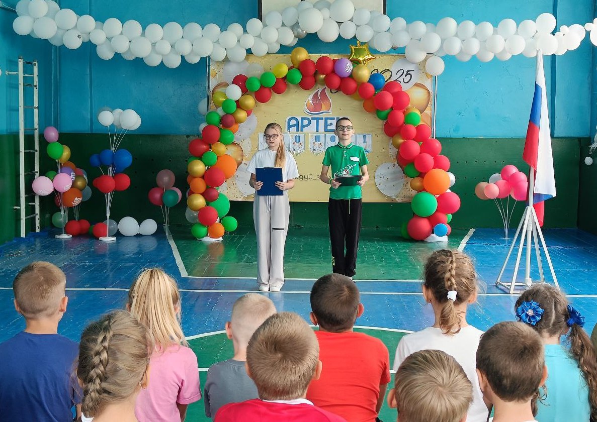После завтрака была проведена торжественная линейка «Здравствуй, «Артек»!». Линейка по традиции началась с выноса государственного флага и исполнения государственного гимна Российской Федерации.