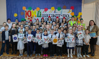 В начальной школе прошёл праздник "Посвящение в пешеходы". Юные инспектора движения- ученики 7 класса, выступили перед ребятами с агитбригадой "ЮИД шагает по планете". Самые маленькие ученики дружно отвечали на вопросы, отгадывали загадки, вместе с учениками 2, 3 и 4 класса играли в игры на знание правил дорожного движения, ребята были активными, весёлыми и получили "Памятки юного пешехода".