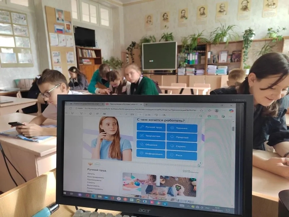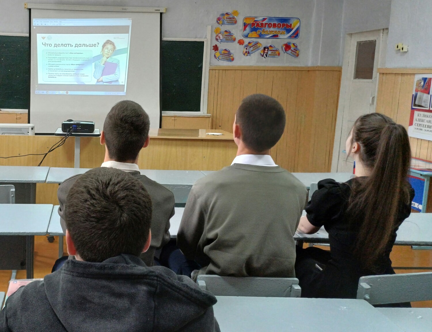 На занятии обучающиеся 6 - 11 классов узнали об особенностях, алгоритме и сроках прохождения профориентационных диагностик на портале «Билет в будущее». Уже 22 сентября ученикам 6, 8, 10 классов предстоит пройти диагностику «Мои интересы», а ребятам постарше – "Мой профиль".