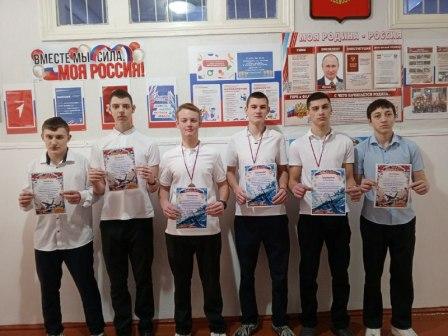 Старшеклассники школы отметили день Защитника Отечества соревнованиями "Спортивное многоборье". Ученики 9-10 классов Гладченко Владимир с позывным "Герц", Феофилов Данила - "Комета", Мыскин Кирилл - "Мелман", Петров Сергей - "Грек", Цобов Максим- "Марс", Феофилов Андрей - "Спринтер" соревновались в стрельбе, подтягивании, в меткости "Дартс", разборке и сборке автомата, броска баскетбольного мяча, упражнении на пресс. По результатам всех видов победителем стал "Спринтер", второе место "Комета", третье место "Грек".