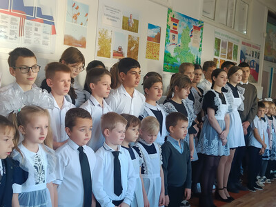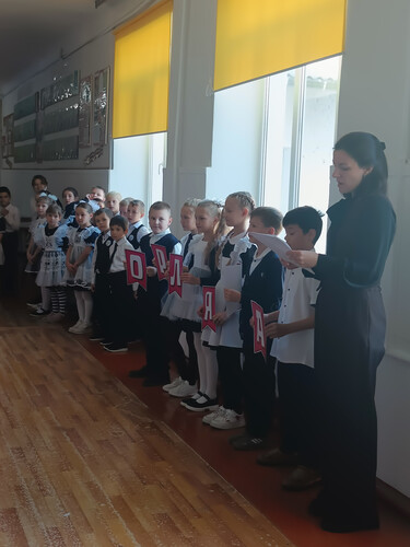 Ученики 4 класса стали помощниками советника директора по воспитанию на линейке, они рассказали о том, какие треки включает в себя программа "Орлята России", познакомили первоклассников с законами и девизом "Орлят".