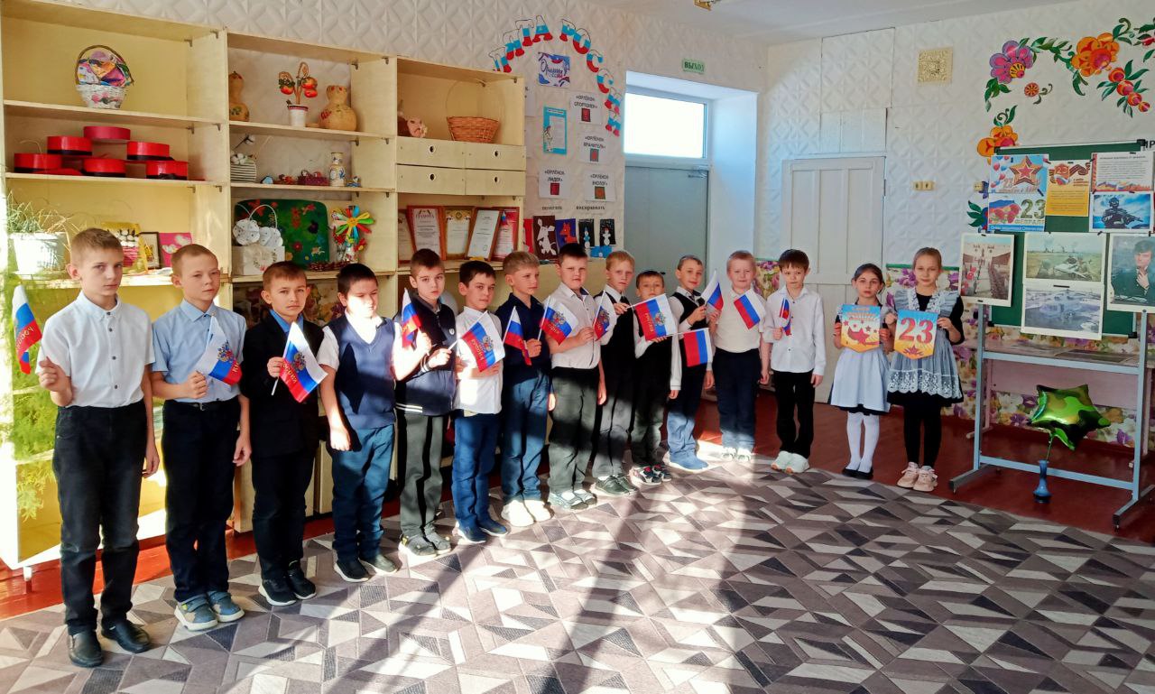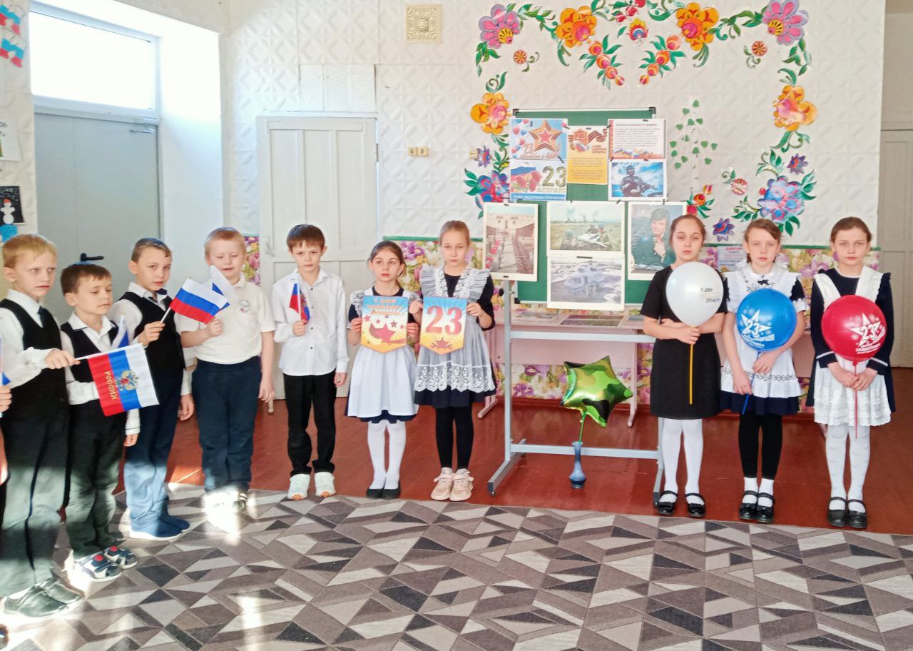 В преддверии приближающегося праздника в начальной школе прошла торжественная линейка, в ходе которой ребята познакомились с историей праздника, могуществом нашей армии, прониклись уважением к славным защитникам нашей Родины, в очередной раз повторили самые важные для каждого человека слова: Родина, мир, дружба.