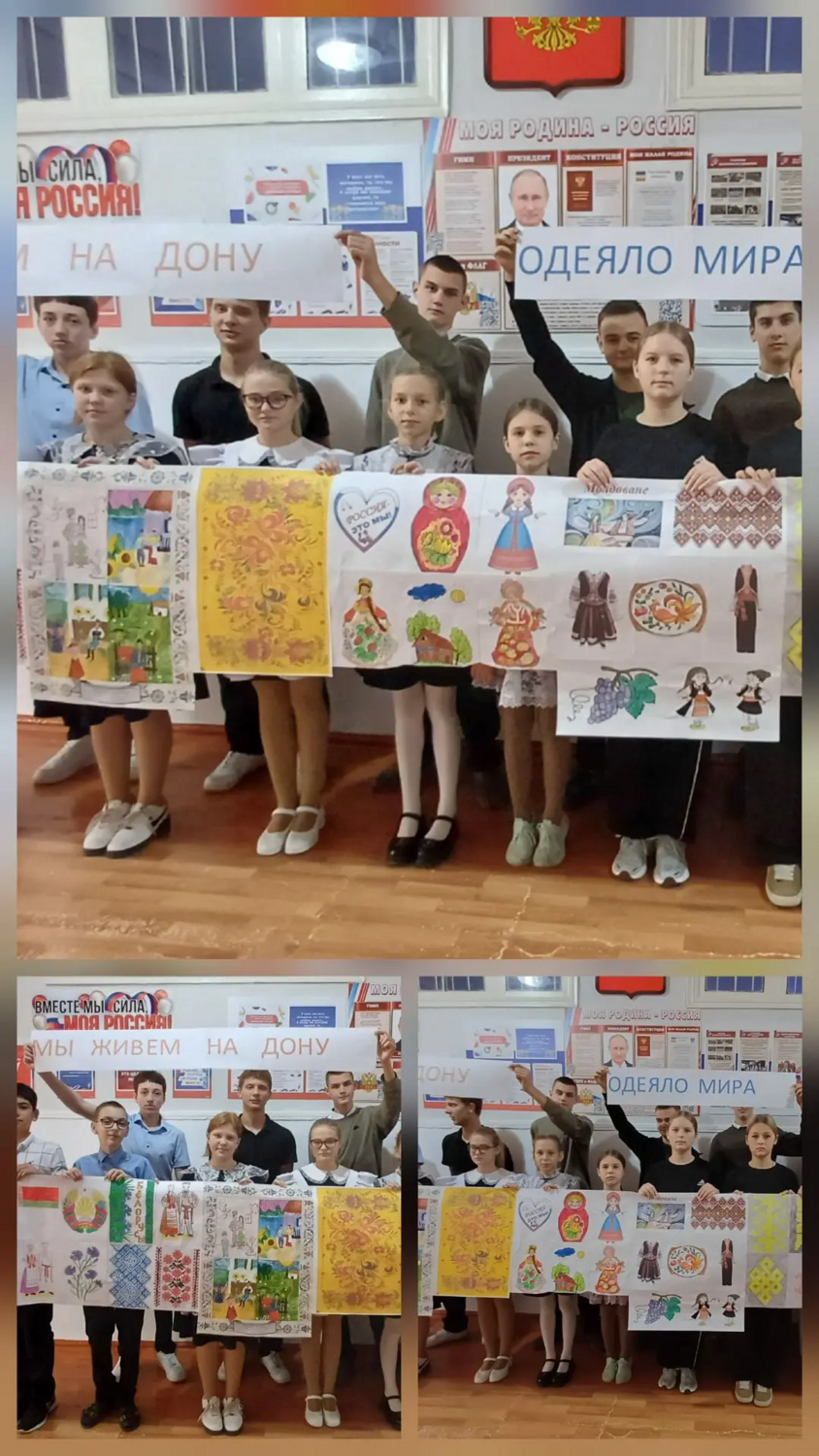 24 октября ученики и педагоги Ново-Павловской школы провели творческую акцию "Одеяло мира" в рамках Фестиваля культур народов, проживающих на территории Ростовской области. Каждый классный коллектив подготовил рисунки, раскрывающие традиции русского, даргинского, белорусского, армянского и многих других народов, населяющих нашу донскую землю. Все рисунки были соединены в "Одеяло мира", символизирующее единство и дружбу народов, уважение к культуре и традициям национальностей и народностей, населяющих наш Донской край.