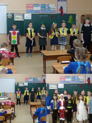 23 декабря в гости к 1 классу отправился Весёлый Светофор вместе с юными знатоками ПДД. Ученики 3 класса рассказали об опасностях на зимних дорогах.