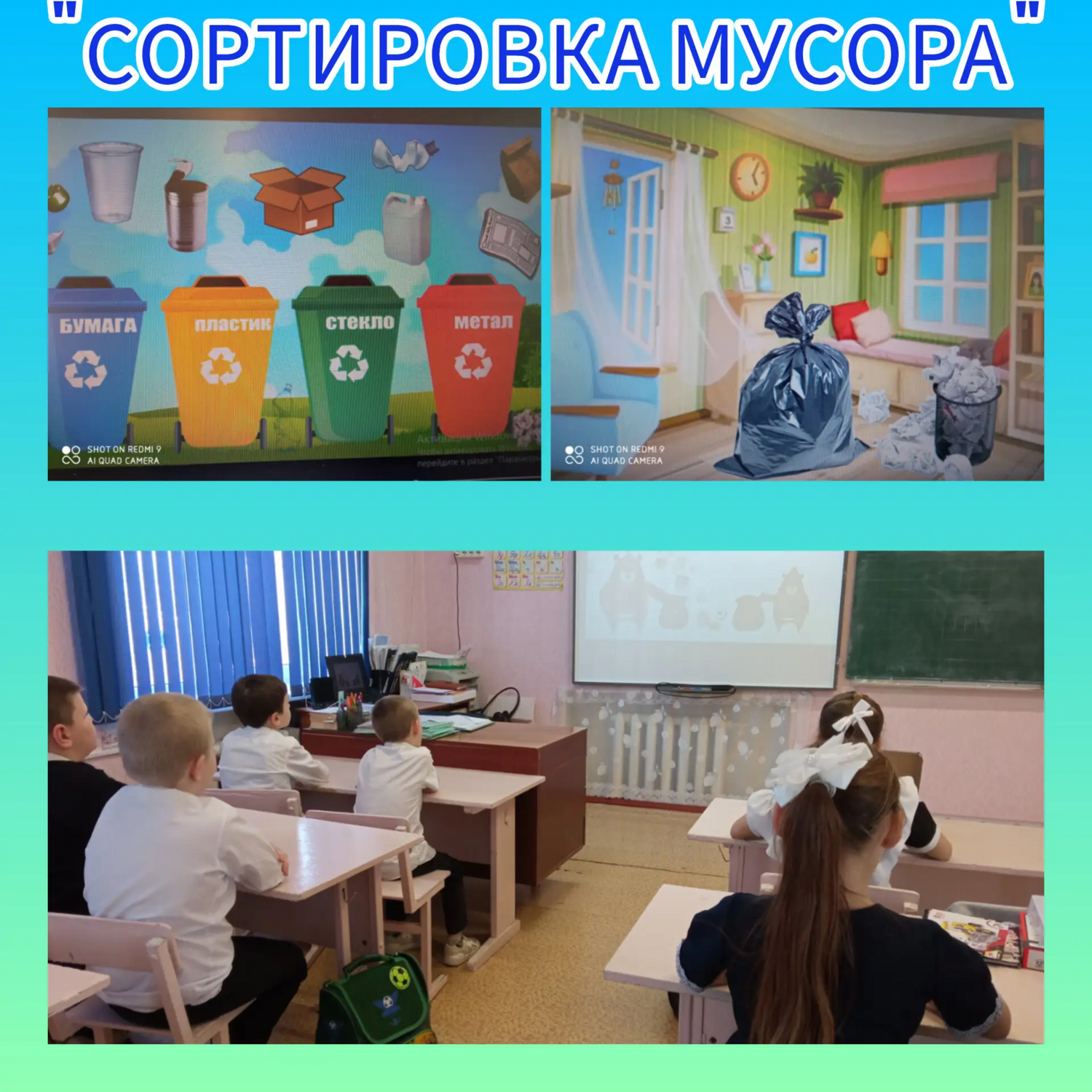 Во 2 классе прошёл видеоурок "Сортировка мусора". Мультизнайка рассказал и показал, откуда берётся и куда девается мусор, а также как правильно его сортировать. Ведь правильное разделение мусора - это залог того, что человечество не погибнет в собственных отходах. После просмотра видео, ребята провели игру и ответили на вопросы по правильной переработке отходов и правильном разделении мусора.