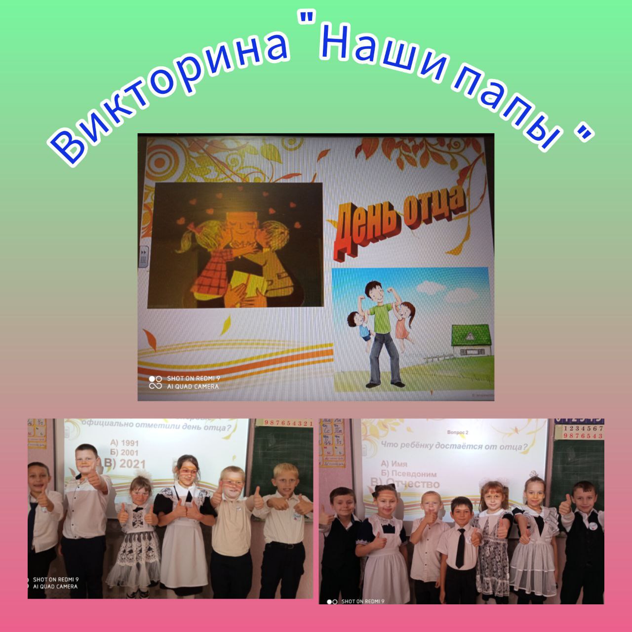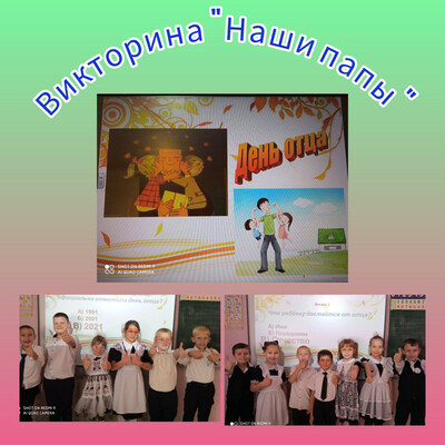 День отца - праздник в России сравнительно новый, но уже приобрёл известность. В преддверии праздника во 2 классе прошла викторина "Наши папы", которая заставила ребят задуматься о добром отношении и чувству уважения к одному из самых близких человеку -- папе, родителям, родственникам, близким людям. На все вопросы викторины ребята совместно нашли правильные ответы, которые заставили задуматься о добром отношении к жизни, о желании творить добро, помогать и защищать слабых.