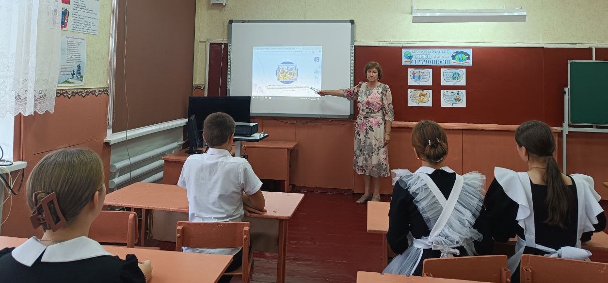 8 сентября - Международный день распространения грамотности. Советник директора по воспитанию Кремнева Алла Николаевна провела в 8 классе викторину «Русский язык – не просто язык!», организованную федеральным государственным бюджетным учреждением «Российский детско-юношеский центр» и Общероссийской общественно-государственной просветительской организацией «Российское общество «Знание». На мероприятии ребята познакомились с интересными фактами о происхождении и значениях слов русского языка, расширили знания о культурном наследии русского языка через пословицы, крылатые выражения и произведения известных русских писателей.