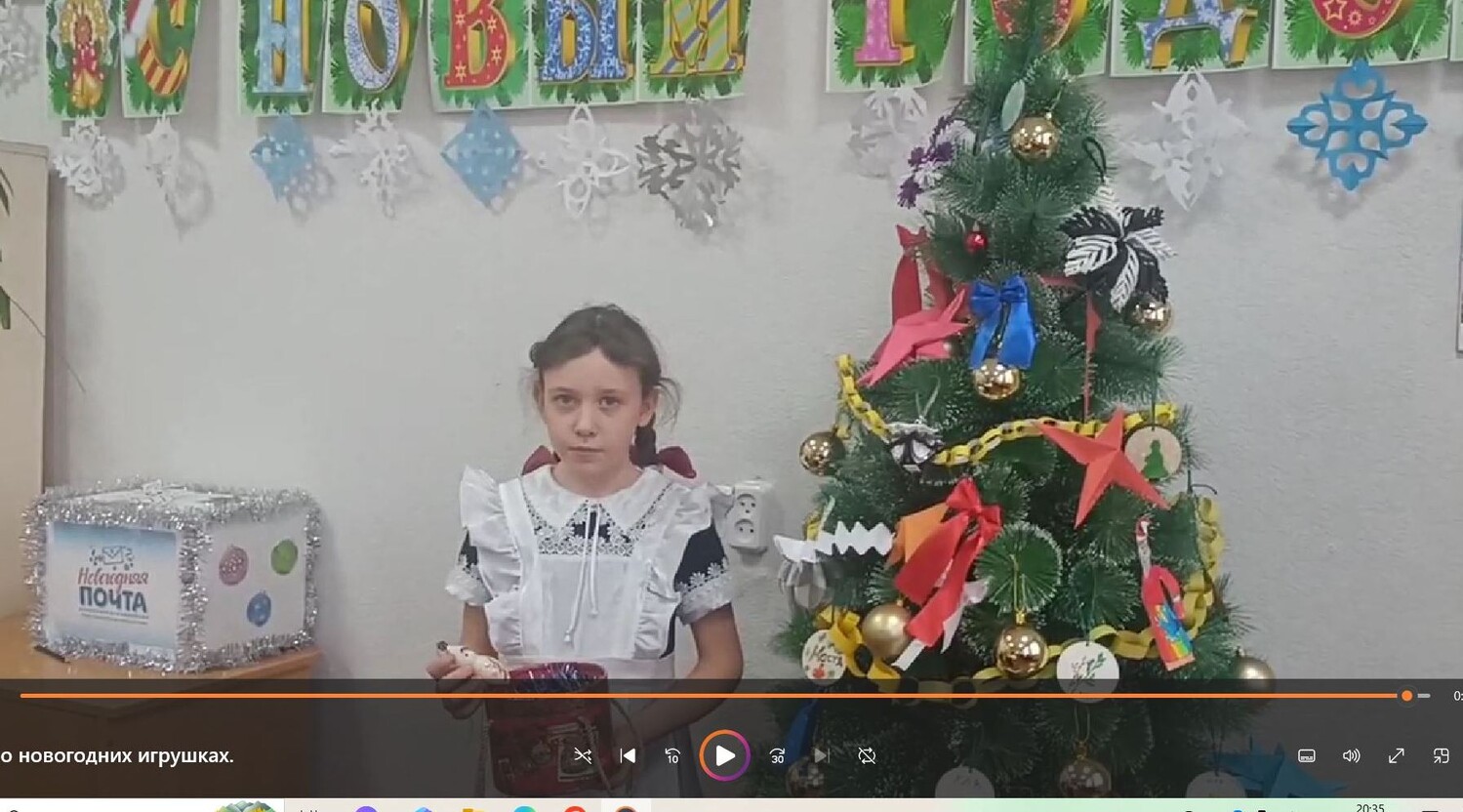Харькова Анна, ученица 5 класса, рассказала о новогодних игрушках из детства бабушки, хрупкие стеклянные игрушки бережно хранятся в их семье.