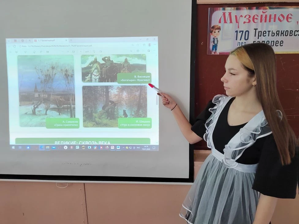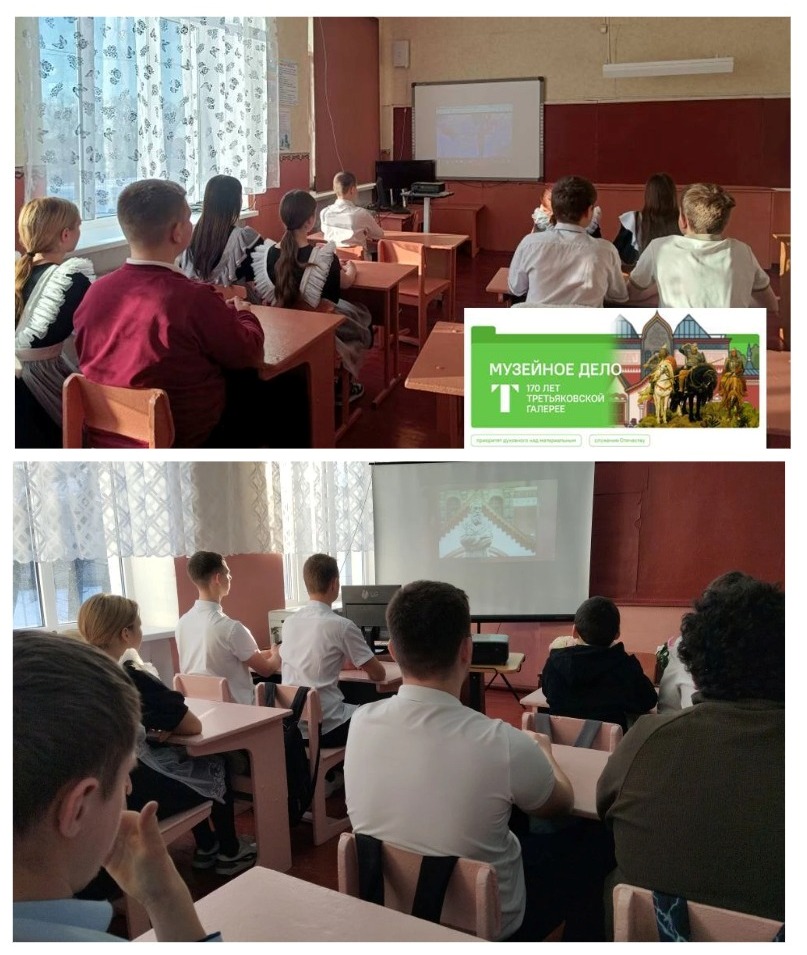 Ново-Павловская школа принимает активное участие в реализации мероприятий национального проекта «Молодежь и дети». Тема внеурочных занятий «Разговоры о важном» 19 января – «Музейное дело. 170 лет Третьяковской галерее».