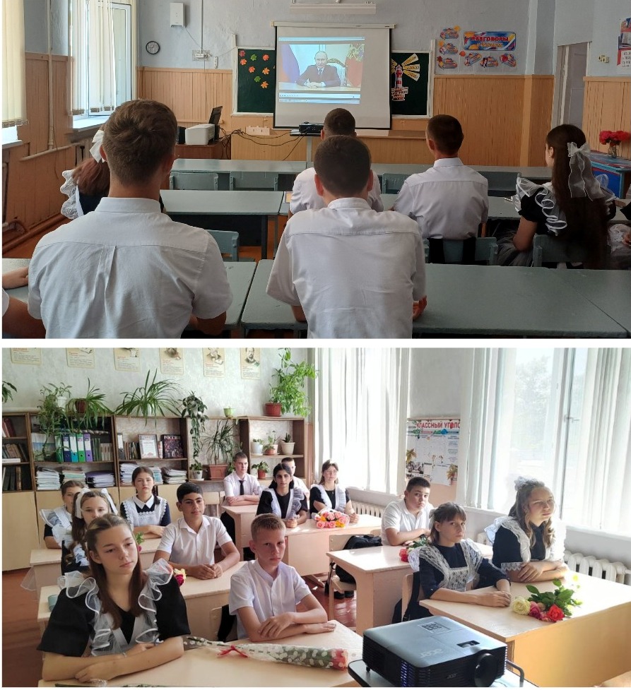 В начале занятий педагоги поздравили школьников с началом нового учебного года и организовали просмотр обращения Президента Российской Федерации Владимира Владимировича Путина.